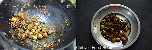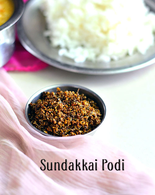 • Sundakkai podi : Heat oil in a kadai & saute the turkey berries/sundakkai. Add cumin seeds, pepper corns and roast everything well till you get a nice smell of roasted turkey berries. Powder everything together adding salt & finely chopped garlic. Mix with plain rice adding ghee.