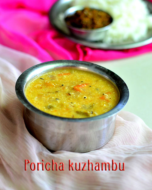 Start your lunch with paruppu sadam continue with podi, poricha kuzhambu and finish with curd rice or drink buttermilk. Enjoy this healthy and spice less lunch menu.