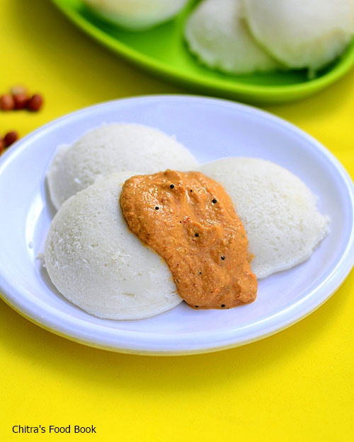 Sendhil loves chutneys made using groundnut. I usually make Peanut/Groundnut chutney in this way. I was looking for a Peanut/Kadlekai chutney with the combination of tomato & red chillies but without onion. I came across this recipe in Sailu’s kitchen. This tomato peanut chutney without onion tastes great for idli, dosa.