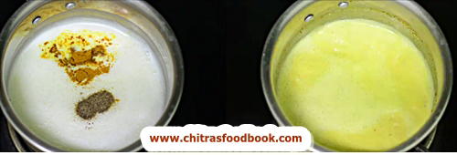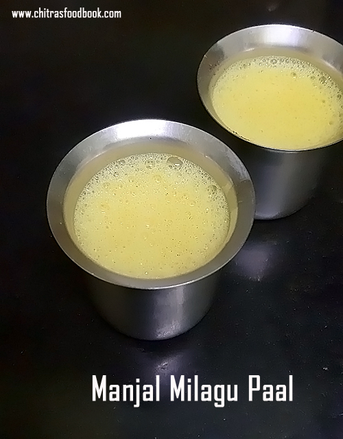 Every year my MIL used to give me a pack of homemade turmeric powder using the raw turmeric we buy during Pongal festival. I add a pinch of turmeric powder in milk, boil for few minutes and then consume it. You can also use good quality store bought turmeric powder. Ok, lets see how to make turmeric milk at home with step by step pictures and video.