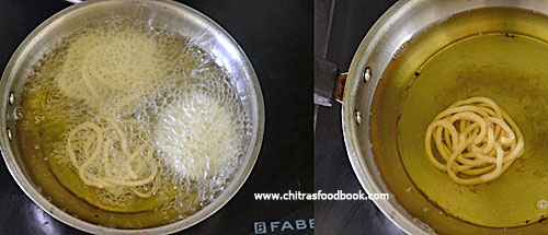 - Do not fry this murukku in high flame because color changes to golden brown. Always cook in low to medium flame.