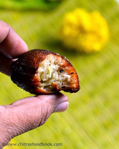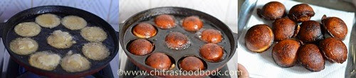 Kerala style sweet appam recipe is known as Unniyappam/Neyappam.I have tasted this several times from my neighbour.It looks dark brown in color with sugar coated on it.I love it a lot.When i was thinking of Onam sadya recipes,i reminded this recipe and asked my neighbour Mrs.Prema about it.She told me an easy , no fermentation method which she learnt from her mom.I also referred Kothiyavunu for some tips to get soft unniyappam.I tried it for the first time today and it came out very well.I was able to achieve the same color & taste of my neighbour’s unniappam.It tastes crispy outside & soft inside.As my neighbour suggested, i coated all the appam with sugar which is not usually done in Kerala i guess.But it gave an appealing look to the dish. Also she told me to deep fry the appam but i did it in my paniyaram pan to get a nice shape.I gave some of them to my friends and everybody liked it a lot.I am sure Sendhil would love it too.Thanks to my neighbour for teaching me this yummy sweet appam recipe. Try this dish for Onam festival.I am sure u will love it like us.Lets see how to make this kerala style unniyappam recipe in detail.