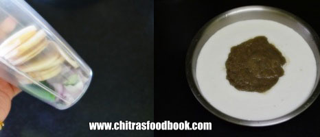 - Take thick idli batter and add this paste. Mix well and check for salt.