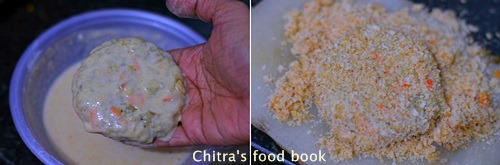 Hi Chitra one more question regarding veg burger…the cornflakes powder is to b mixed in maida cornflour n oil. Batter or is to b mixed in bread crumbs powder.today i am remaking burgers as last time d paty aloo became soggy.any tips…?