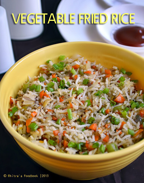 Vegetable fried rice is our favourite Chinese rice recipe. When my husband was in US for a short period , he used to have this rice for lunch in which the quantity of vegetables was more than rice. After he came from the trip, he told me to make fried rice adding more vegetables than rice. I started making the same way and it made the rice more healthy. I used to add ajinomotto but after knowing its ill effects I stopped using it. But It din’t make any difference in taste and flavour. The only part I feel lazy/difficult is to chop the vegetables finely. Otherwise its an easy to make dish. It will come out very flavourful too. Make sure you add all these vegetables to get the exact taste of fried rice.