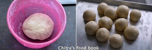 - After the resting time, take the dough and pinch into golf balls size. Heat oil in a kadai to deep fry.